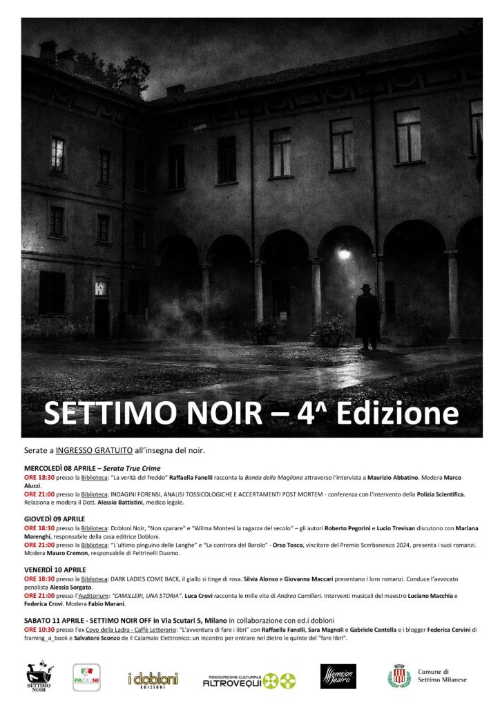 Dall’8 all’11 aprile torna il Festival Settimo Noir 2026, e iDobloni sono partner della kermesse.